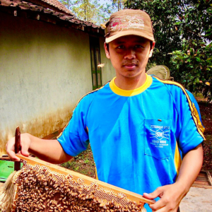 Sejak tahun 1983 berkat bimbingan dan pelatihan perlebahan Bapedda Jatim kami bisa mengembangkan usaha peternak lebah lokal apis Indica dengan kapasitas produksi 25 sampai 50 kg per bulan, kemudian setelah adanya perubahan fungsi hutan dan keterbatasan tanaman pakan lebah dari alam sekitar, produksi madu semakin menurun. Setelah itu pada tahun 1992 kami mendapat pelatihan perlebahan di PUSBAHNAS [pusat perlebahan nasional] di Bogor, kemudian kami mengembangkan peternakan kami dengan lebah apis mellifera dengan sistem pengembalaan.